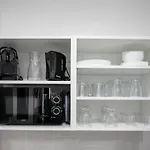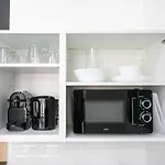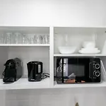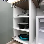 Há quartos com cofre pessoal, kitchenette e escrivaninha, bem como cozinha inclui microondas, chaleira elétrica e um frigorífico.